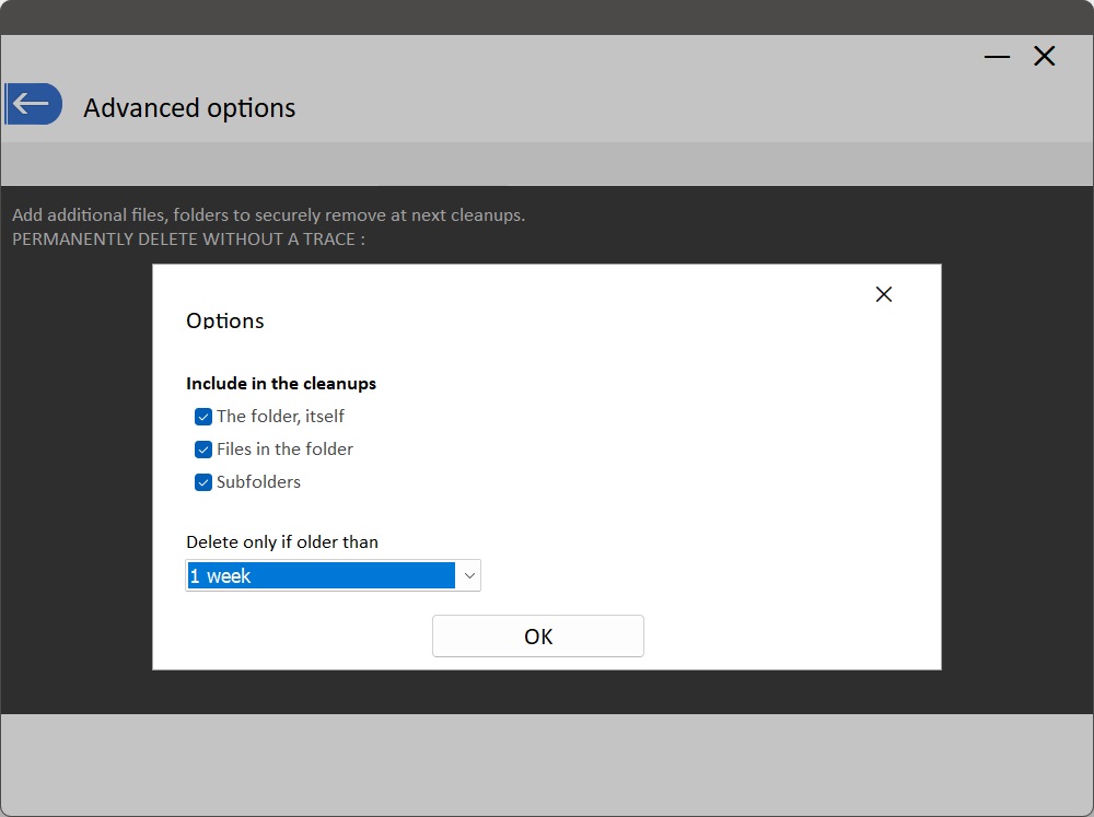 + Ulepszona opcja : aby skonfigurować czyszczenie za pomocą 1 kliknięcia