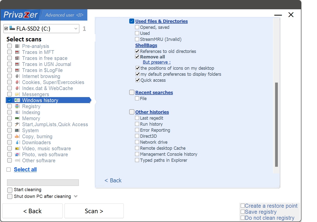 Wrzesień 2012) - New PrivaZer.ini . Backup of scan options . Backup of jumplists to preserve . Backup of COOKIES to preserve . Backup of "Express Setup" options