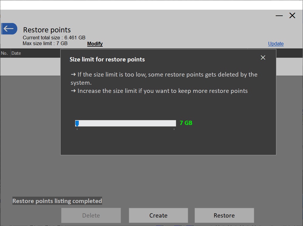 Dodano nową opcję : "restore point creation" .